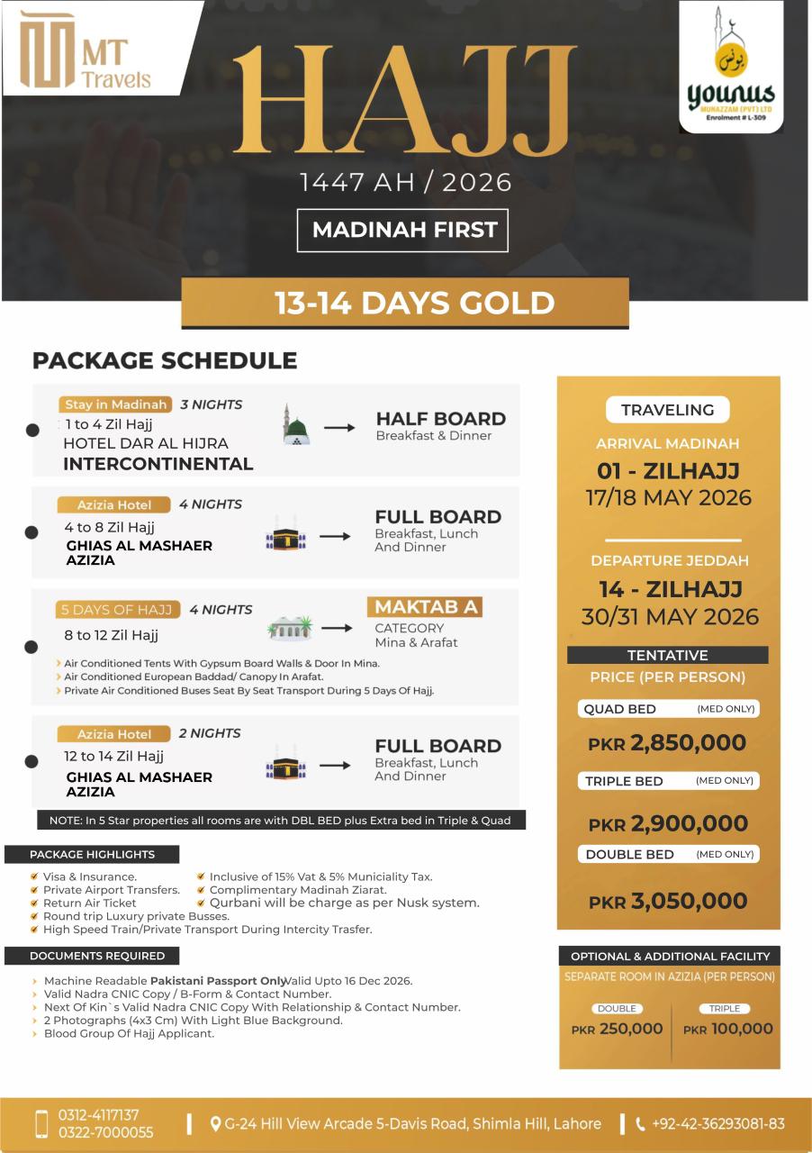 Hajj Madinah First 13-14 Days Gold
